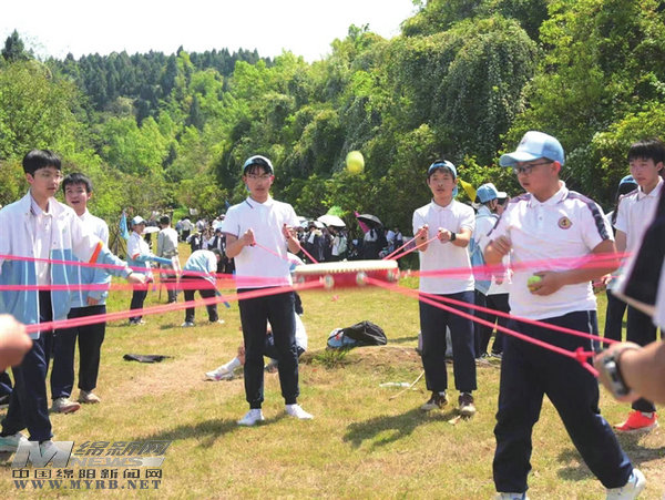 学生们参与协作颠球项目,在动静结合中磨炼意志、增进友谊。 记者 彭雪 摄