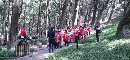 孩子们走进七曲山千年古柏林开展研学活动。记者 刘晓东 摄
