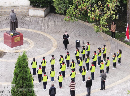 学生们来到王右木纪念园开展清明祭扫活动。记者 陈元松 摄