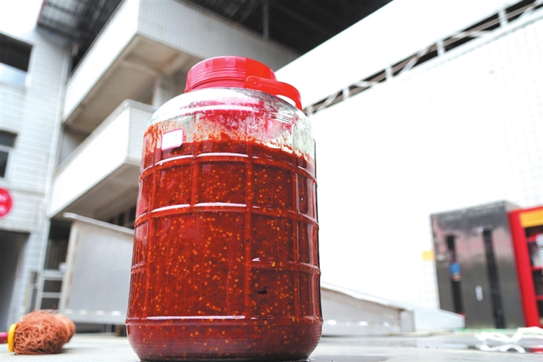 长兴食品厂总经理肖鹏说:“我们选用本地二荆条辣椒,经过两三次的清洗、剪段,再加合适的盐分比例,最终要经过8至12个月的时间封闭发酵,让它的酱香味在时间的沉淀下达到最佳。”