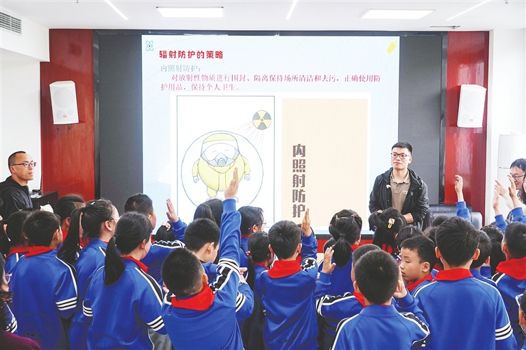 在随后举行的以国家安全为主题的知识讲座中,孩子们踊跃提问:“什么是国家安全?”“生活中如何防护辐射?”“遇到可疑放射源应该怎么办?”……工程师一一解答孩子们的提问。