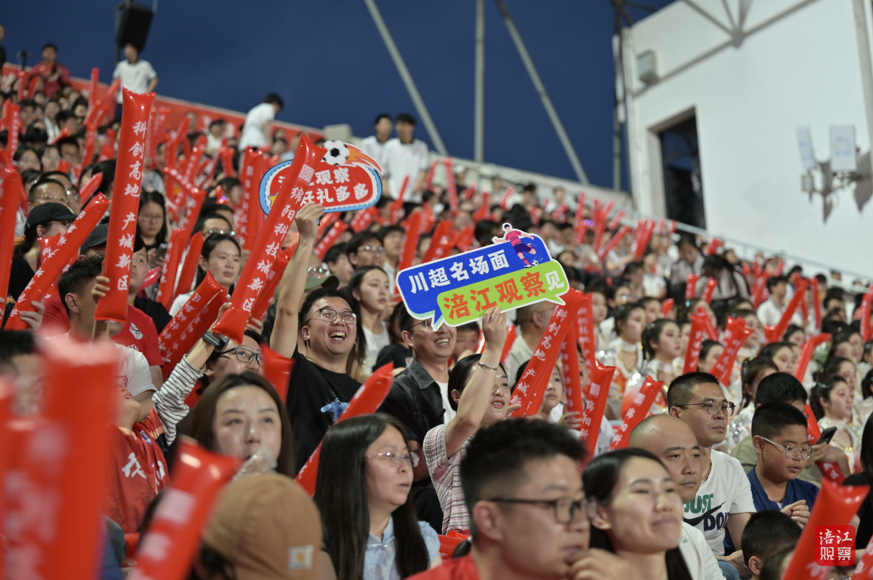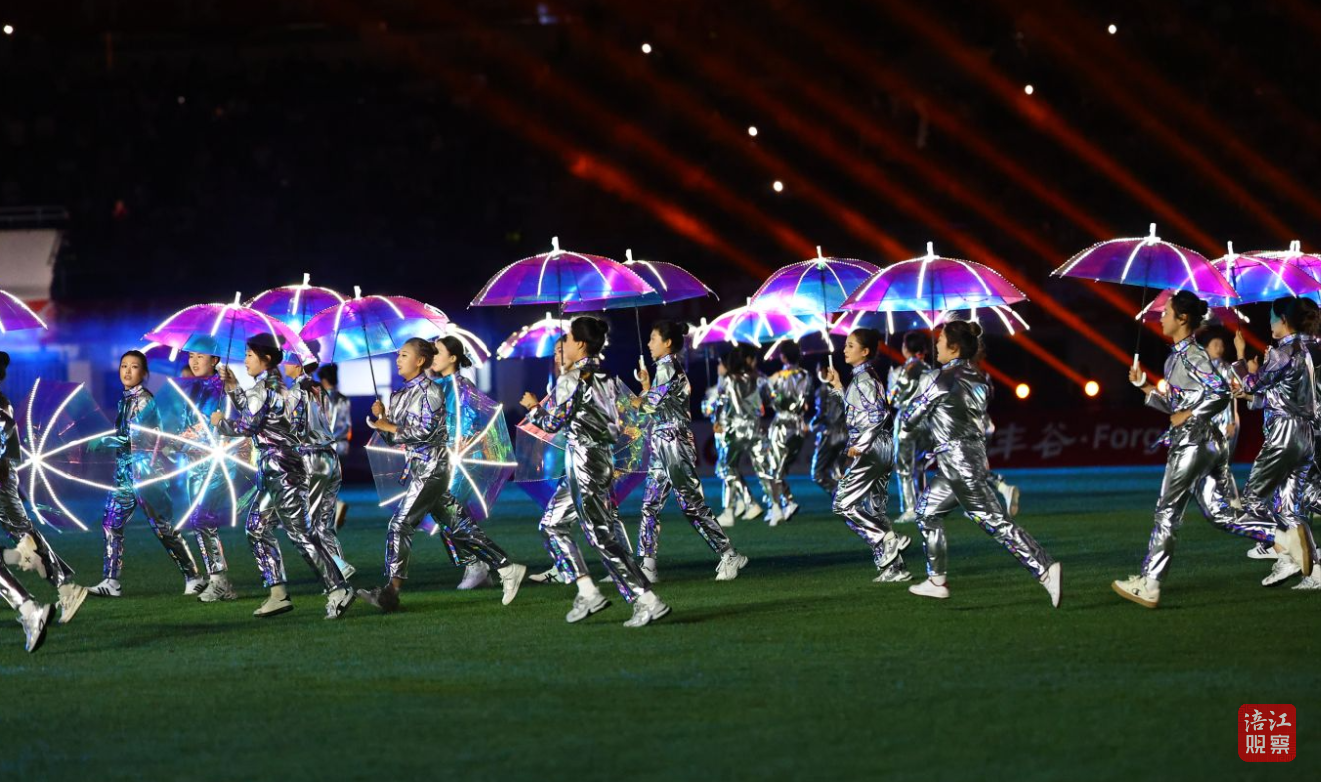 发光伞舞与流行舞灵动切换,演员与大屏画面深度互动,沉浸式、场景化的表演让观众眼前一亮。“太震撼了!原来我们科技城新区这么有科技感、这么热闹!”现场球迷王先生举着手机拍照录像,分享给亲友。光影流转间,科技城新区“产业高地、城市新中心”的形象深入人心,掌声与欢呼声一浪高过一浪。