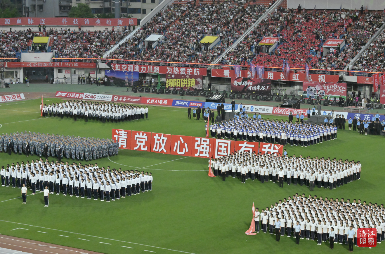 4月18日晚,绵阳市南河体育中心主体育场内掌声雷动、呐喊不断,川超决赛阶段绵阳主场第三场(科技城新区主场)文艺展演激情上演。当“请党放心,强国有我”的青春誓言响彻全场,当炫酷灯光与活力歌舞点燃看台,两万余名观众沉浸在体育与文化交融的盛宴中,用欢呼与掌声为绵阳喝彩。