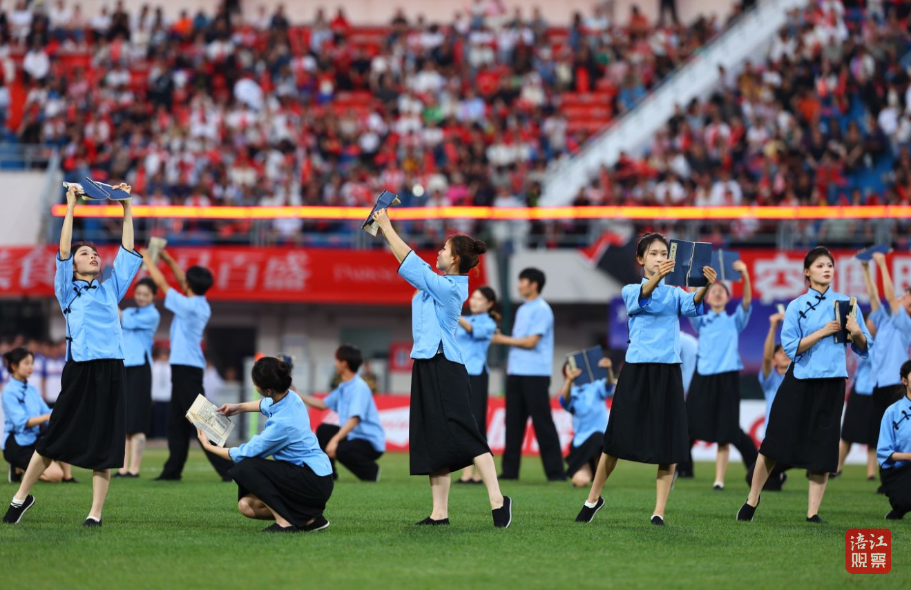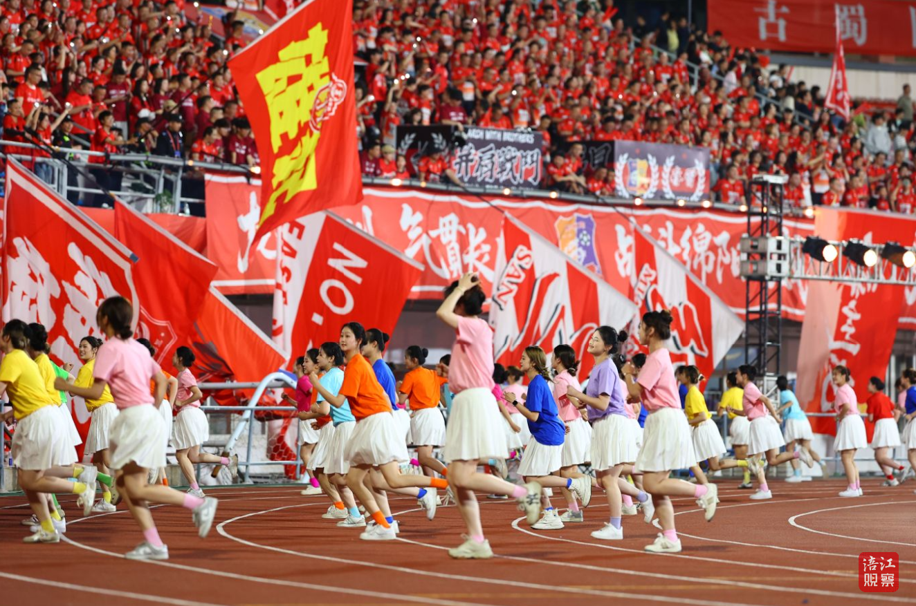 比赛落幕,逐梦绿茵・不断向前篇章温暖登场。伴着《奔跑》的激昂旋律,四川文化艺术学院500名学生活力入场,轻快舞步、整齐队列、热情互动,将足球运动的拼搏与城市奋进的力量融为一体。