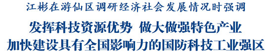 调研中,江彬在听取游仙区经济社会发展情况汇报后指出,游仙区作为中国科技城核心区和绵阳中心城区,创新资源富集、产业基础坚实,要精准发力抓好既定部署落实,加快把科技资源优势转化为产业优势、发展动能,为全市高质量发展提供有力支撑。要全力服务保障好属地国防科研院所,用好院地协同推进机制,推动更多优势领域科技成果转移转化,为加快建设中国特色社会主义科技创新先行区贡献更大力量。要加快推动科技创新和产业创新深度融合,建好用好管好“一区两园”,强化土地、资金、能源等要素保障,靶向招引落地一批重大产业项目,做大做强“新赛道”产业规模,构建多元协同的产业发展格局。要全力推动现代服务业提质增效,抢抓城市更新重大机遇,统筹完善城市功能配套,提档升级文化、体育、旅游等公共服务供给,打造一批有烟火气、有科技范的消费新业态新模式新场景。要坚持在发展中保障和改善民生,深入推进以人为本的新型城镇化,落实好“双提双解”常态化工作机制,用心用情解决企业和群众急难愁盼问题,守牢安全发展底线,持续增强人民群众的获得感、幸福感、安全感。