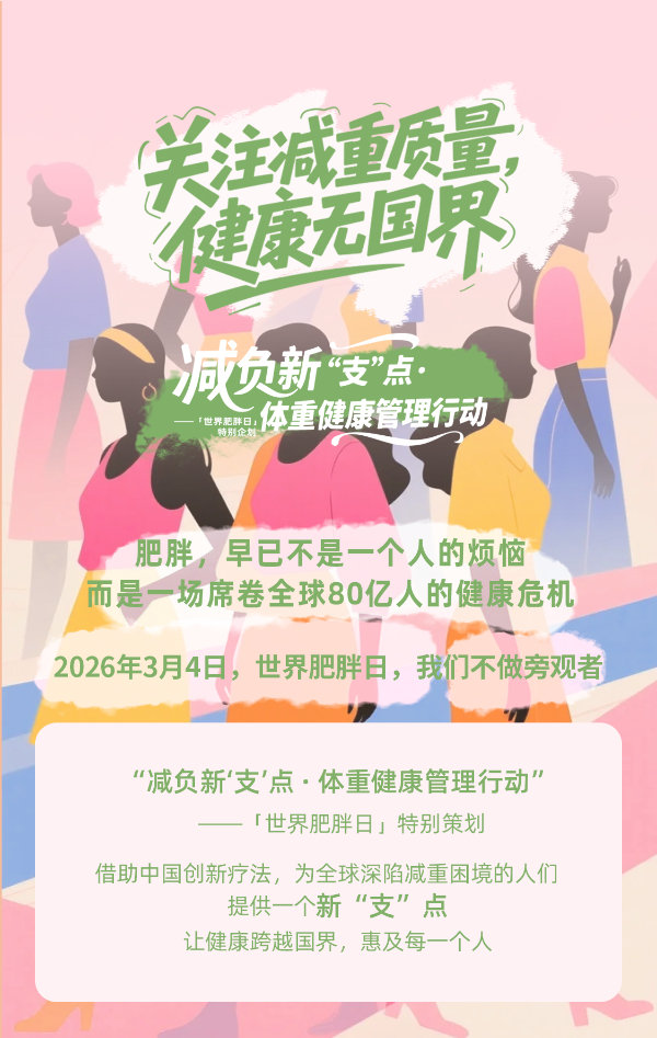 3月4日是世界肥胖日,今年以“80 亿个理由行动起来应对肥胖”为主题,向全球发出共同应对肥胖的号召。在此背景下,新华网联合糖吉医疗发起减负新“支”点・体重健康管理行动 ——「世界肥胖日」特别企划,邀请海内外减重领域权威专家共探科学减重路径,分享中国原研内镜减重技..[