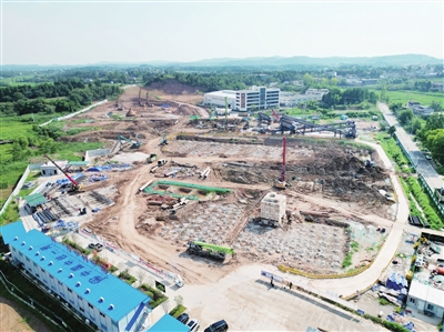 近日,记者在游仙区新桥镇新民村看到,当地项目施工工地呈现“双线并进”的景象——一边是附属厂房地基施工有条不紊、热度不减,一边是传送带串联的核心产线争分夺秒加紧调试。[