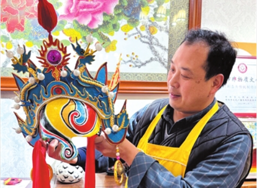 冠上舞蝶 指尖传韵—— 走近川剧盔头传统制作守“艺”人汪伟
