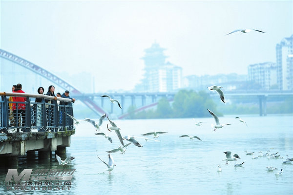 最近几天,不少绵阳人欣喜地发现,在绵阳城区三江湖国家湿地公园湖面上,红嘴鸥再度如约而至。它们在宽阔的三江水域自由翱翔,清脆鸣叫声此起彼伏,为静谧的晚秋时节增添了几分生机与活力。[