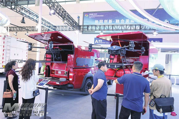 在科博会A馆,一款由皮卡车装载的高层快反灭火无人机系统吸引了众多目光。[