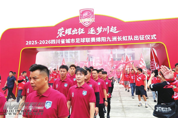 9月26日上午,2025-2026四川省城市足球联赛绵阳九洲长虹队出征仪式在园艺山举行。[