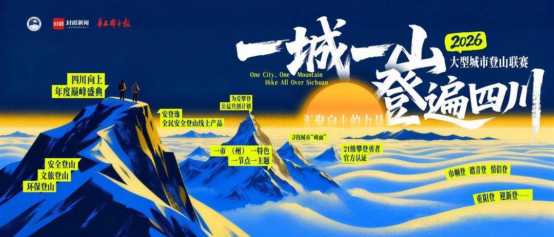 二十一座城,二十一座峰。一场全民登山热潮,正在蜀山大地澎湃兴起。3月起,由封面新闻、华西都市报、四川省登山户外运动协会联合主办的2026“一城一山·登遍四川”系列活动将正式启动。[